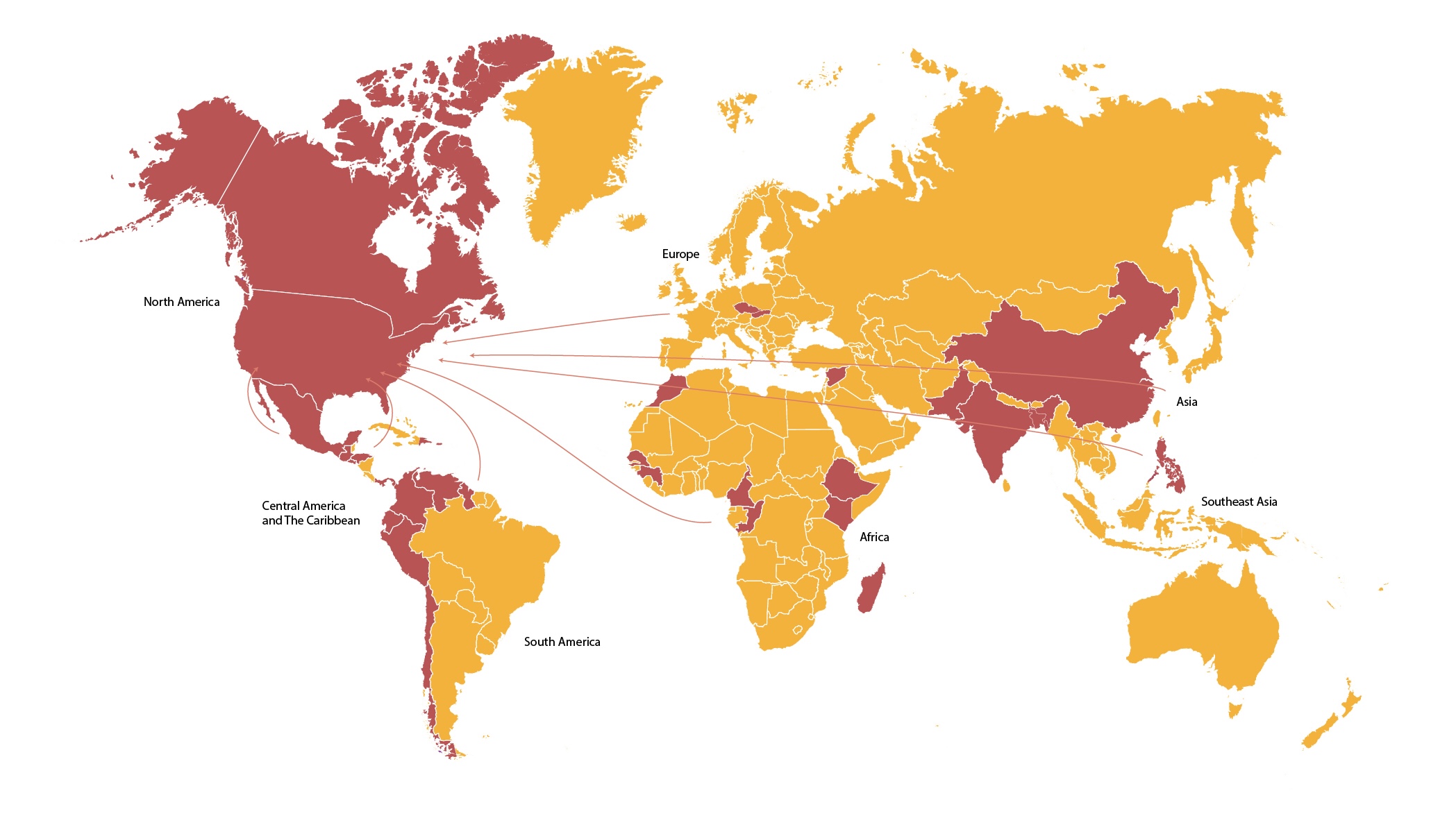 ● Countries of origin for survivors served by The Salvation Army United States